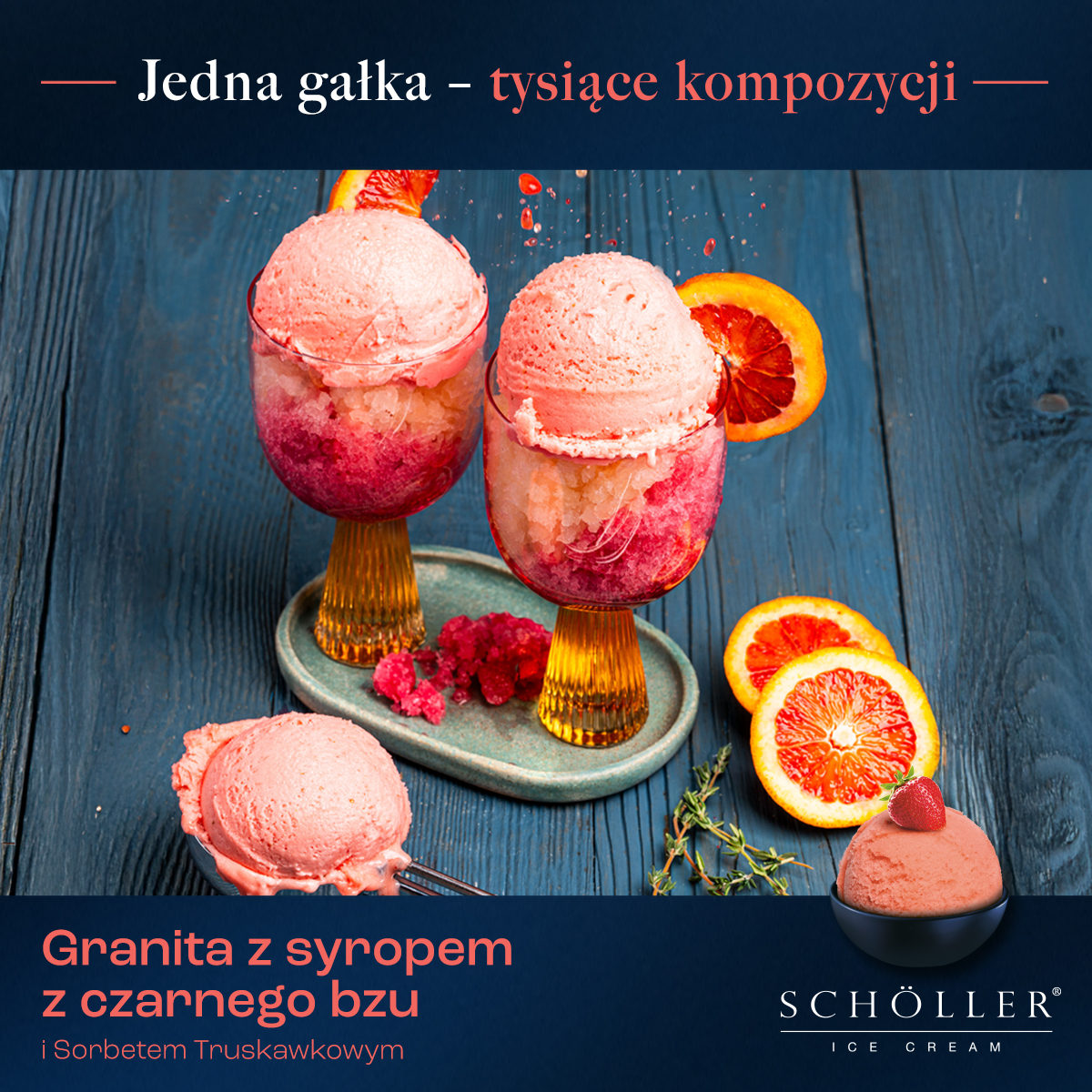 Granita z syropem z czarnego bzu z sorbetem truskawkowym (grafika)