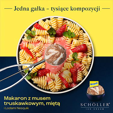 Makaron z truskawkami i lodami Nesquik (grafika)