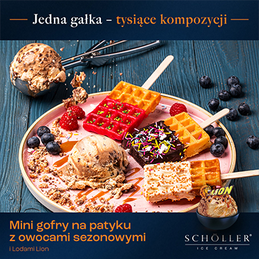 Mini gofry z owocami i lodami Lion (grafika)