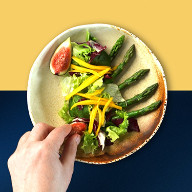 Sałatka ze szparagami i sorbetem mango–marakuja (grafika)
