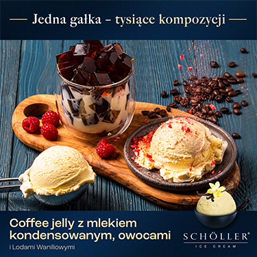 Coffee jelly z mlekiem skondensowanym, owocami i lodami waniliowymi (grafika)
