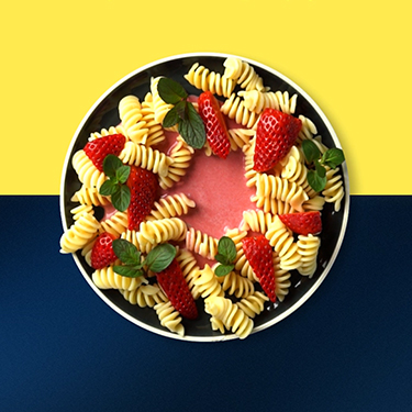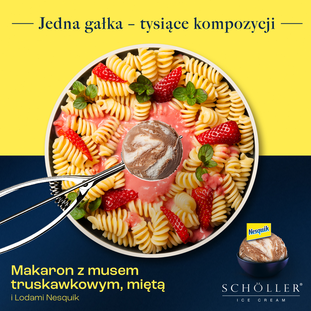 Makaron z truskawkami i lodami Nesquik (grafika)
