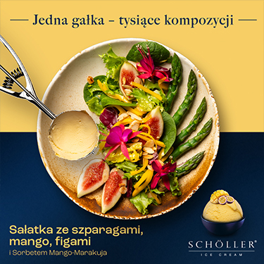 Sałatka ze szparagami i sorbetem mango–marakuja (grafika)