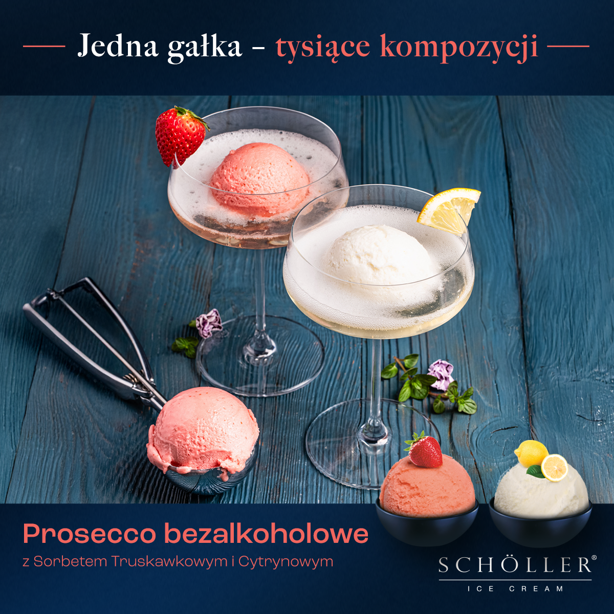 Sylwester: bezalkoholowe prosecco z sorbetem truskawkowym i sorbetem cytrynowym (grafika)
